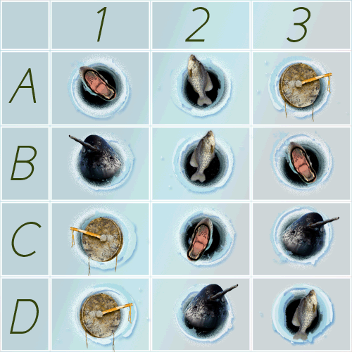 Poster #4: Choose 1 remaining survivor and match them with the coordinates of your chosen Ice-Hole. Wanda - D3 (Icefish)