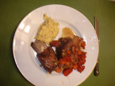 I am making this on New Year's Eve. I am very excited because I love short ribs. I haven't decided if I'm going to do it in the crock pot or in the oven yet - I do not have an enamel-coated dutch oven so I'm thinking I might be better off doing them in the crockpot. (I do have an oven-safe stainless steel pot but not sure if it'll turn out right in that.)I didn't have the foresight to ask Santa for a Le Cruset.  My beef shortribs were $1.64/pound. Not too expensive. I sometimes buy the boneless ones for stew, because I like them better for slow cooking than round or chuck. This recipe seems to be for the bone-in ones. Can't wait! Yummmmm.