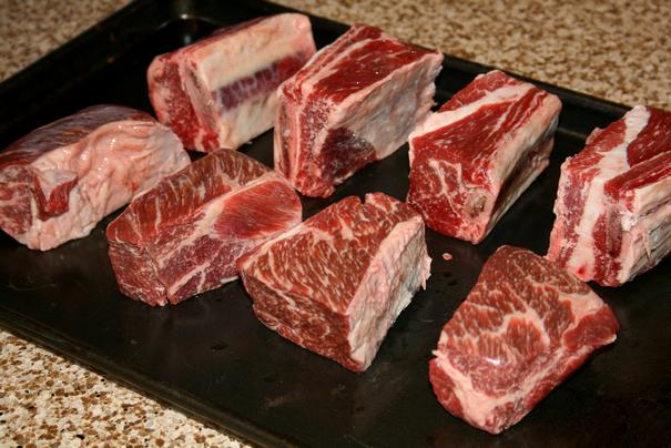 Hrumph. I didn't know what the heck I was looking for, having never bought beef short ribs, so I went to our local butcher, who is all about having organic everything. I got nailed for 8.99/lb.Went with three lbs as there is only two of us. I'm doing this in an oven-safe stainless steel pot so I'll let you know how it goes. Been in the over for about 20 minutes so far. agman did it