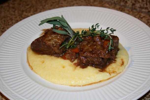 LAST EDITED ON 01-02-10 AT 10:00 AM (EST)This was crazy good. DH gave it a 10. He thought it was perfect. He's more of a beef guy than I am but damn, this was very, very good! The cabernet was a good choice of wine. The bigger, the better for this recipe. We didn't change much other than not cleaning out the pan inbetween the searing and veggie cooking. We did deglaze the pan inbetween and that's why you'll see a bit of burgandy tint in the veggies. On and I used a shallot in addition to the onion. We put it over creamy polenta with goat cheese. The recipe calls for four ounces of goat cheese. I would change it to three. My pictures kinda stink. I was in a huge rush and we were in the middle of a major house clean getting ready for my brothers to come visit. *sigh* Here we go... Ingredients-