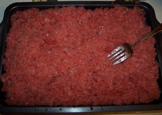 LAST EDITED ON 08-26-10 AT 06:03 PM (EST)I know I'm a day early but I'm going to be out most of the day tomorrow and hope to get this back on track. So I'm starting with dessert - Watermelon/Basil Granita - we've been making granita's forever. As a broke single mom - Bre and I couldn't afford to buy an icecream machine but it didn't cost much of anything to make a good granita. Recently, it may have been Rachael Rays mag but I'm not sure, I read about adding herbs to granitas and have been testing different recipes ever since, this is one of my favorite combos. Blueberry/lemon is a close second. So... Watermelon Basil Granita 1 small watermelon 2 T fresh basil, chopped 2/3 c sugar 2/3 c water 3 T vodka - I used vanilla flavored