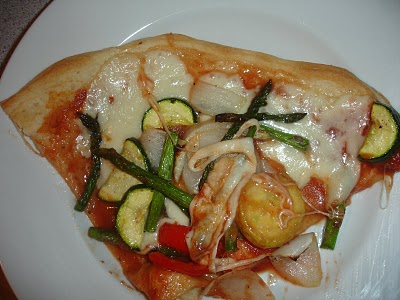 I did this Saturday night. I used red bell peppers, asparagus, onions, squash, and zucchini. I cut the veggies, loaded them into a bag with the canola oil and some minced garlic. As you will see, I used a basket on the grill. I think this basket is actually for cooking fish or chicken, but I used it. It was getting dark out, and this really helped. I then did the pizza in the oven, on a stone. It was great. I wish I had cooked it a tad bit longer in the oven. It wasn't soggy, but it was soft. But it was also late, and I was hungry. I had leftover veggies that I ate on the side, and I also had pizza to eat the next day.  Samboobree, brought to life by Arkie