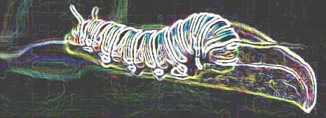 Okay I found another photo I wanted to enter. Wait I just entered one. Well darn! Wait I can make into instant visual art! Yes I can turn something beautiful into something frightening. Or at least weird! An alteration here or there and whammo! So my innocent little caterpillar on a leaf has been turned into a menacing psychedelic glow worm! Scary huh?