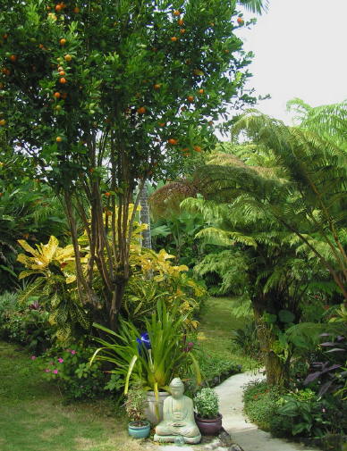 cahaya, yes, tropical gardening has its perks. It also has drawbacks like 9 inch centipedes in the dirt along with cockroaches and fire ants, one inch of topsoil soil underlaid with solid lava, and no down time when I don't have to mow, weed, or fertilize! In the summer months, it's Hot, Humid, Horrid.