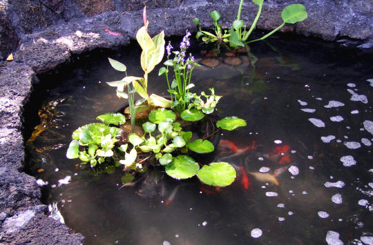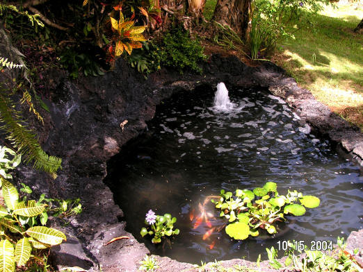 3. The lava rock koi pond my son built beside the gazebo