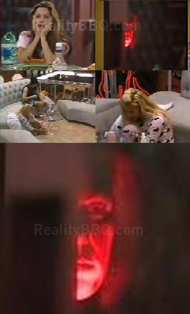 LAST EDITED ON 08-09-06 AT 02:00 PM (EST)agree... They are all seeing the faces in the mirror again. Kaysar saw it first in the bug room. Now they are all in the room looking and the face appears again a couple of times. Janelle and Danielle swear its Cappy.. Will keeps talking about his DR and we keep getting flames. He is complaining about getting in trouble and saying the show sucks and he really doesnt want to have to go to sequester. Same old complaining he usually does. They are all getting ready for a 2 hour lock down. Also Janelle told Will that she gave up the chance to play in next weeks veto comp to win the pov this week while they were working out. Will just told Danielle and Boogie about Janelle not being able to compete for Veto.