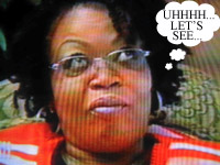 Don’t worry, Antonia baby, you ain’t gotta be embarrassed bein’ seen on this fine ride. <<pats Hoverround and starts off down the driveway. Stops briefly when they come to Iyanla‘s parked Mercedes. Reaches over & quickly breaks off hood ornament, and tosses it into her handbag>> “Remind me to super-glue that on to the front of my scooter later. Now for more Jeeee-yull Tracey pearls of wisdom. Now Antonia, girl, remember, you get one chance at superstardom, you gotta grab it, just like I did. You gotta start thinking’ of comin’ up with, uhhhhhhhhhhhh, you know, some kind of catchphrase. Just take something’ Iyanla says to you and call it your own. For instance, if I were you, I’d already be havin’ T-shirts made up with the logo “Too Pretty To Ride the Bus” across the front. Yeah, lotta girls would wanna buy those. You got a website yet, Antonia? Don’t worry girl, you gonna be alright. But you gotta start cryin’ soon…they like it when you cry. You watch any of my SO performances, Antonia? I let those tears run into my neck creases and down my shirt. And you gotta stop all this nonsense sayin’ your mama is your best friend…Iyanla is your mama now! You just uhhhhhh, you know, remember that."